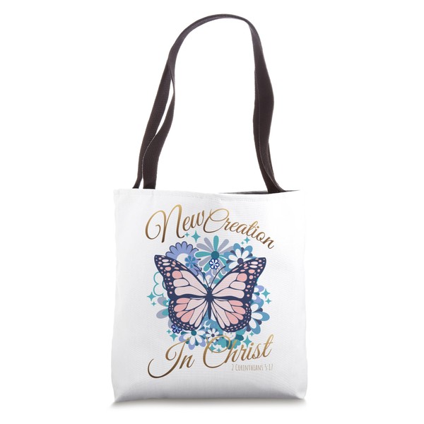 New Creation In Christ Butterfly Floral Christian Tote Bag