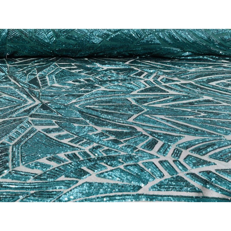 This GEOMETRIC DIAMOND design is embroidered with Sequins on a 4 Way Stretch mesh fabric. The Sequins has especial and extraordinary design on the Mesh . It is super elegant and classy, The royalty design embroider with iridescent Sequins on a mesh can be use for dresses, tablecloths, night gowns, Skirts, prom dresses, wedding dresses, runners for tables,decoration and much more.