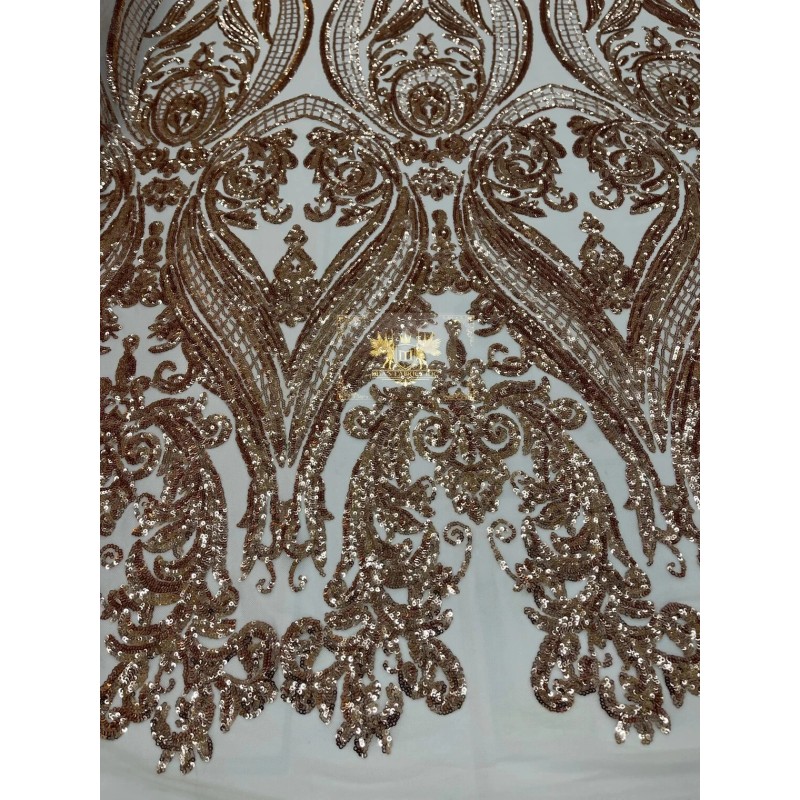 New Creations Fabric & Foam Big Damask Sequins - Champagne Damask Sequins Design 4 Way Stretch Mesh Yard