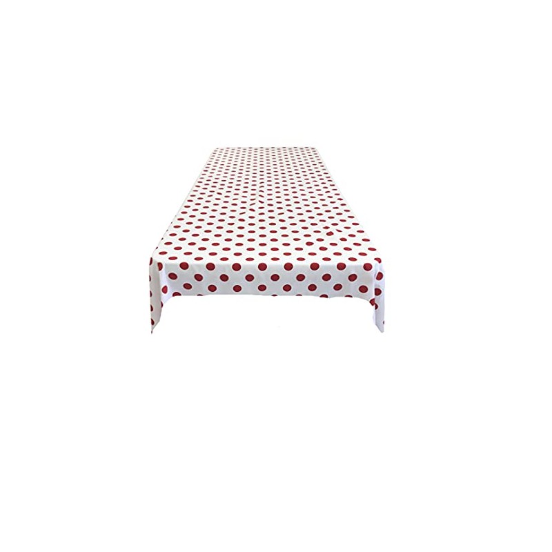 New Creations Fabric & Foam Inc 54" Wide by 72" Long Rectangular Poly Cotton Polka Dot Tablecloth, Red Dot on White