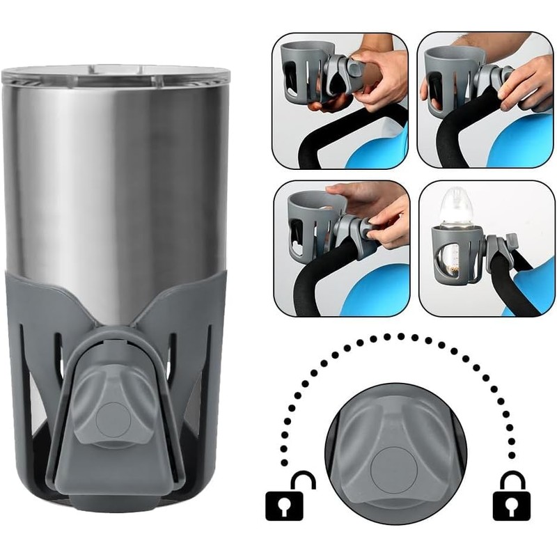 New Cup Holder Compatible with Bugaboo. A Solid Super Secure Fit. 360 Degrees Rotatable. Anti-Shake Spill Resistant. (Gray)