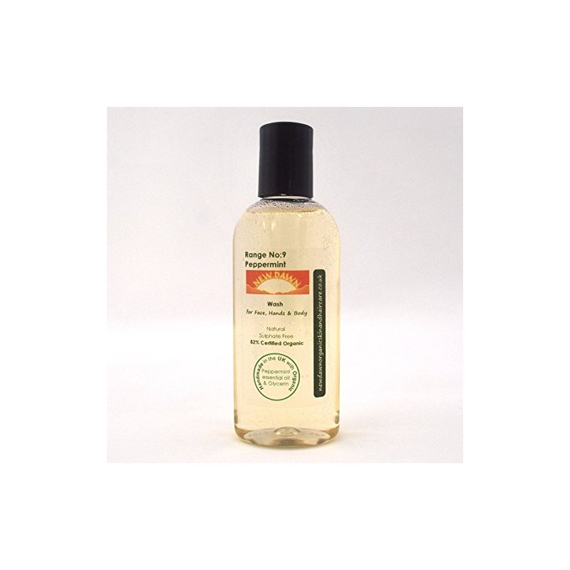 New Dawn Natural & Organic Peppermint Face, Hand & Body Wash - 83% Organic | Vegan - Range No.9 - Shower Gel/Liquid Soap - Sizes 25ml/100ml/250ml/1ltr (100ml)