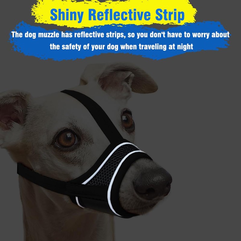 • 【Enhanced Stability】: The muzzle has an upgraded design with a nylon strap around the dog's head, ensuring stability and preventing it from easily coming off.The dog muzzle has reflective strips, so you don't have to worry about the safety of your dog when traveling at night.