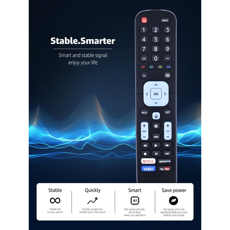 • 【Out of box】Don't need any programming or pairing. Just insert in 2*AAA batteries and it's good to go. With infrared 3.0 technology, the signal stays strong and responds fast.