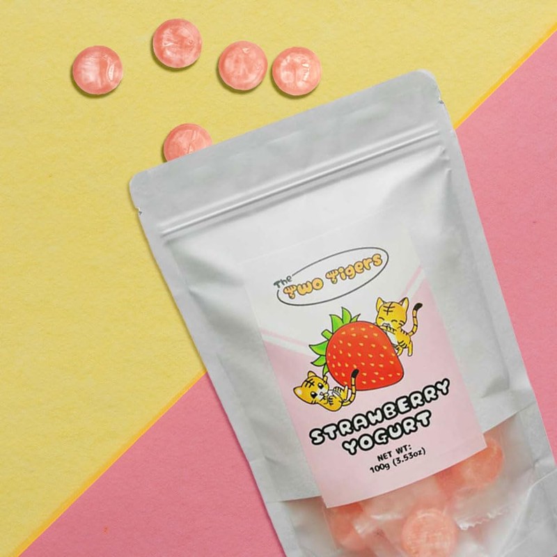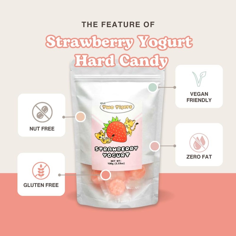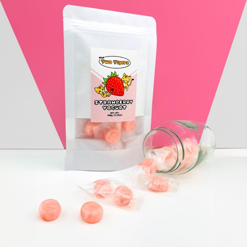 New Flavors of Strawberry Yogurt Hard Candy, Fruit Flavoured Snacks, Candy Bulk, Individually Wrapped Candy to Share (2 Pack) - 100g