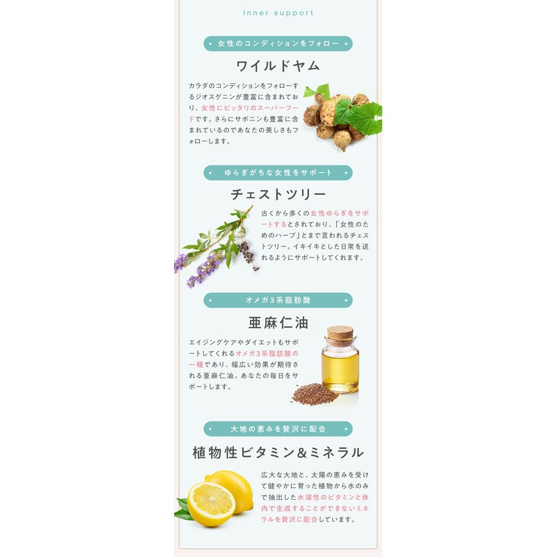 - (Carefully Selected Ingredients for Women) Formulated with carefully selected ingredients necessary for women's beauty and health such as Equol lactic acid bacteria, elastin, agua extract, saggy, royal jelly, etc