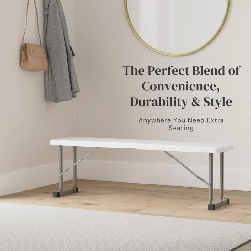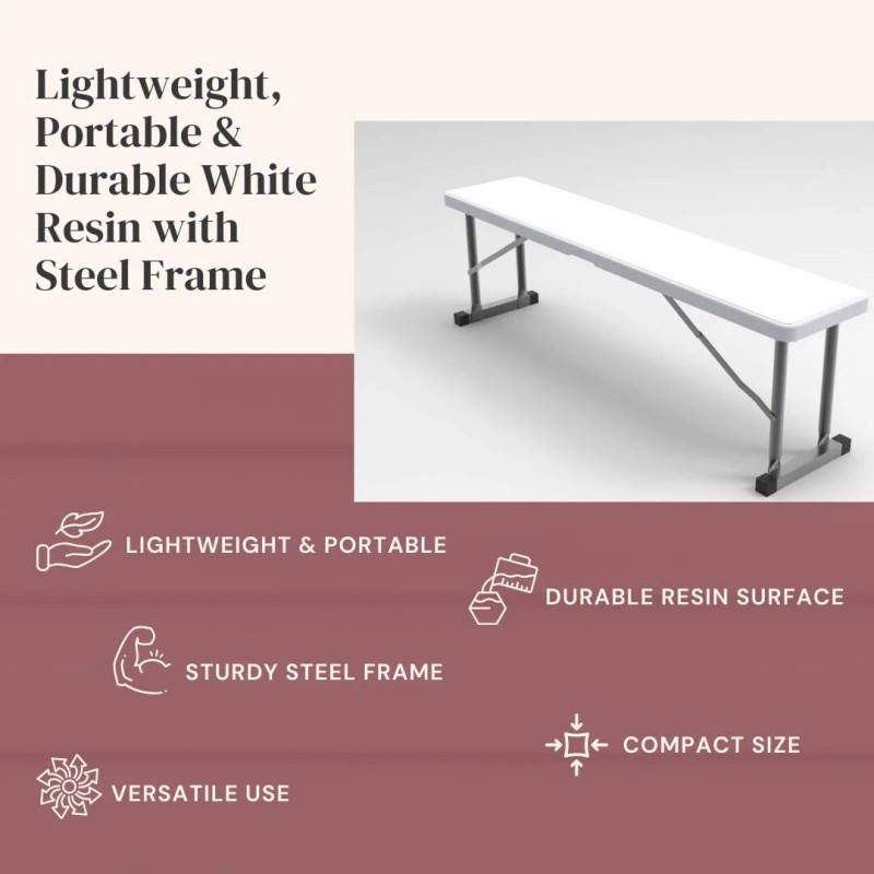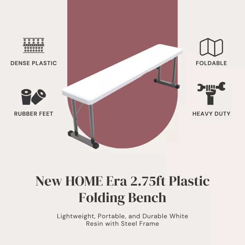 New Home Era 2.75ft Plastic Folding Bench � Lightweight and Portable White Resin