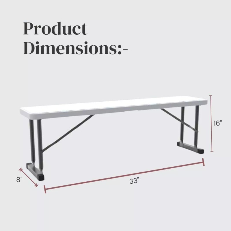 New Home Era 2.75ft Plastic Folding Bench � Lightweight and Portable White Resin with Durable Steel Frame, 33�x8�x16� - Pack of 2