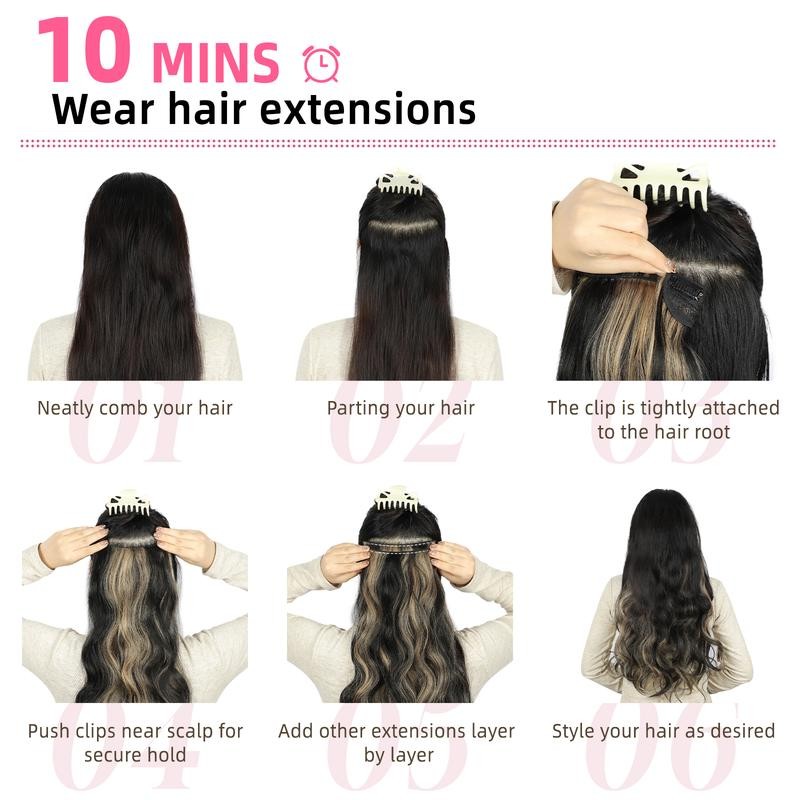 [NEW IN] Vigorous Clip in Hair Extensions Long Wavy Synthetic Hairpieces for Women and Girls, Easy to Install for Daily Use and Event Party Use:_2/18 Black mix Blonde (20inch)