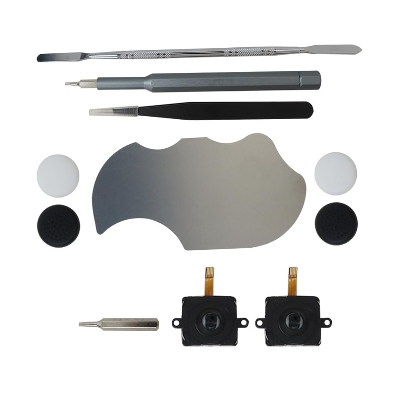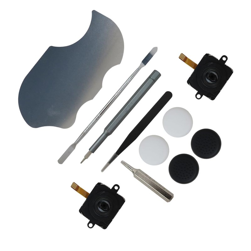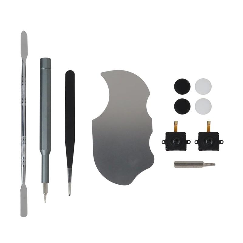 - ❀Package include: 2 x Replacement joystick, 4 x Thumb Stick Caps, 1 × Tweezer, 1 × Pry Tool, 1 × Metal Pad Tool, 1 x T5 Screwdriver, 1 x T5 Small Screwdriver.