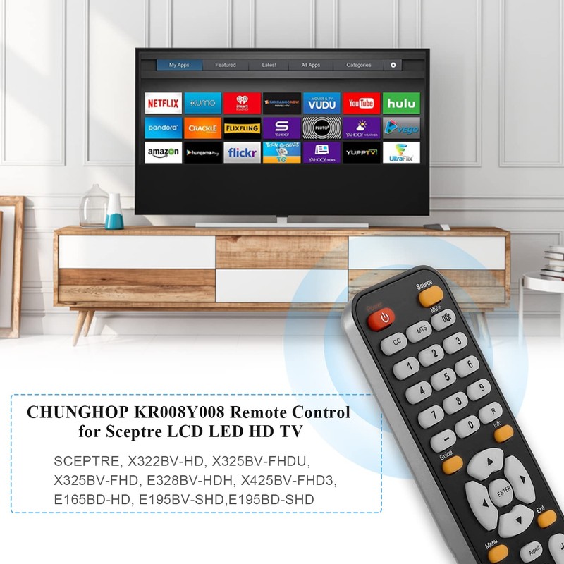 New KR008Y008 Remote Control for Sceptre X322BV-HD X325BV-FHDU X325BV-FHD E328BV-HDH X425BV-FHD3 E165BD-HD E195BV-SHD E195BD-SHD LCD LED HD TV Controller