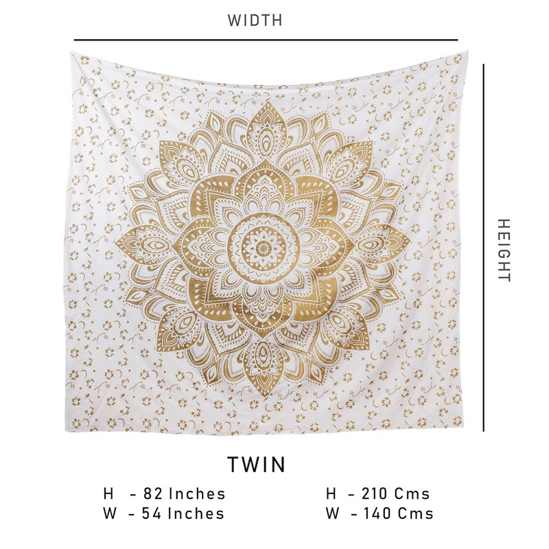 New Launched Twin White Gold Ombre Mandala Tapestry By Madhu International, Boho Mandala Tapestry, Twin Wall Hanging, Gypsy Tapestry, Mandala Wall Tapestries