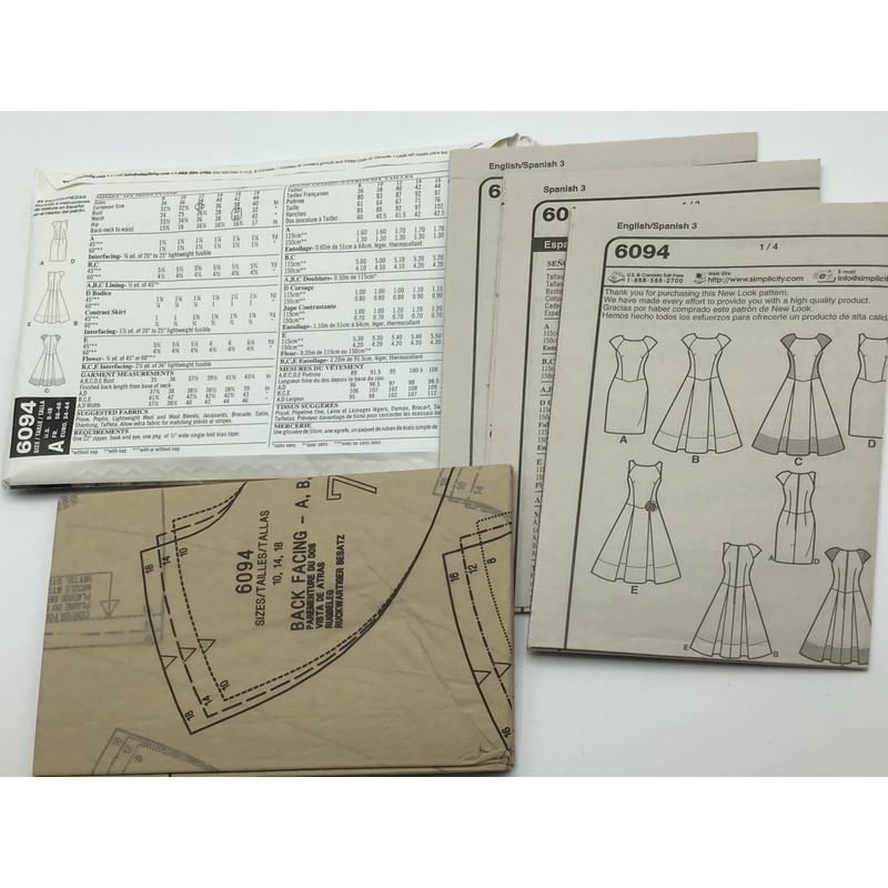 - Misses dresses, size a (8-10-12-14-16-18). new look pattern 6094