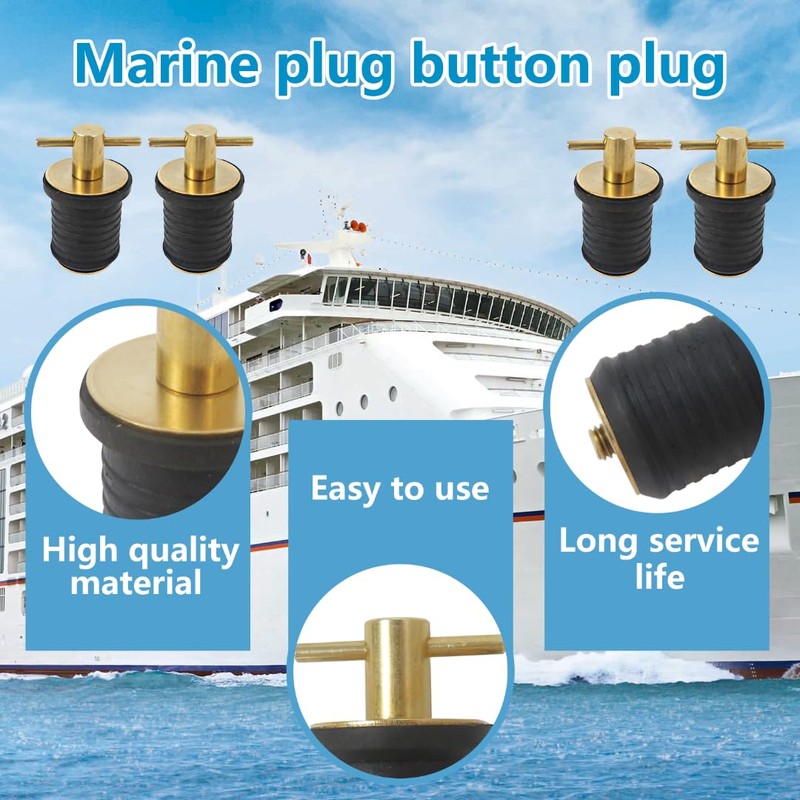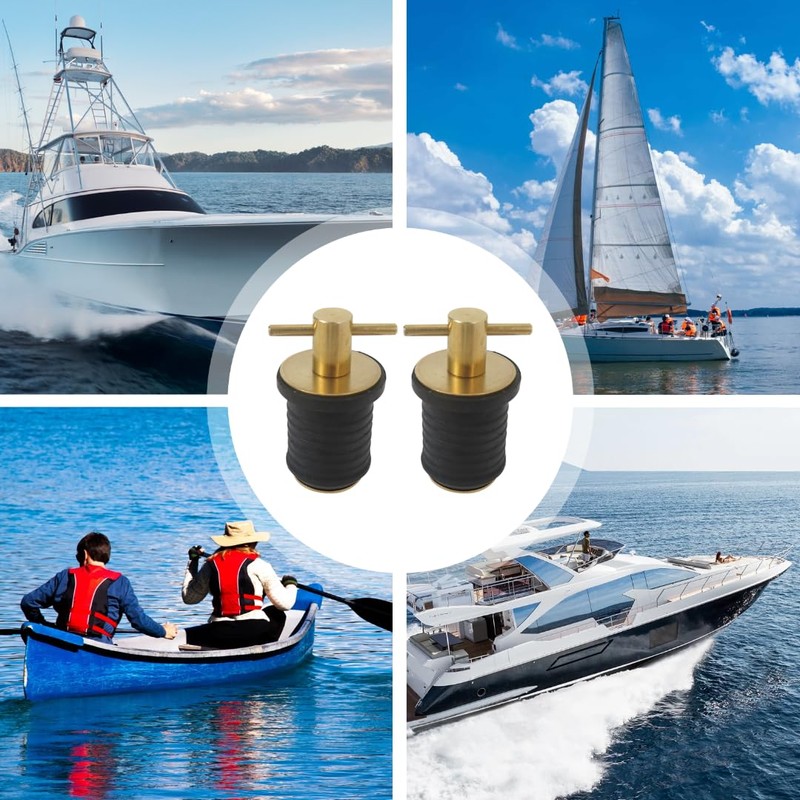 New lovckza 2 Pcs Boat Plug Snap Plugs T Handle Boat Drain Plug Rubber Plugs with Brass Handle Marine Twist Plug Accessories for Yachts, Kayaks, Canoes, Lifeboats, Fishing Boats and Ferries
