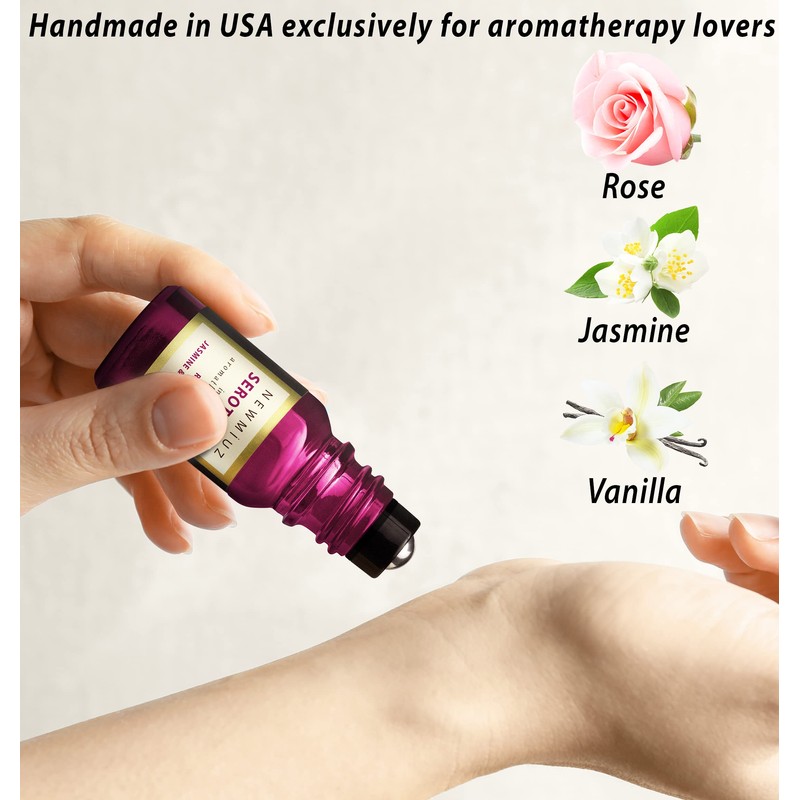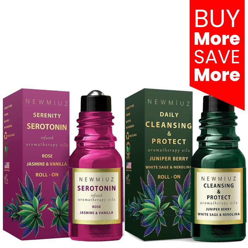New Miuz Roll-On Essential Oil Blends Calming Essential Oil Rose Jasmine Vanilla & Cleansing and Protect Juniper Berry White Sage with Nerolina, Pack of 2