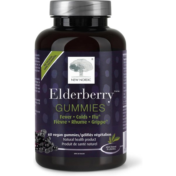 New Nordic Elderberry Gummies - Non-GMO, Sugar-Free Immune Support Supplement - Features Vitamin C & Vitamin E for Antioxidant Support - 60 Vegan Gummies
