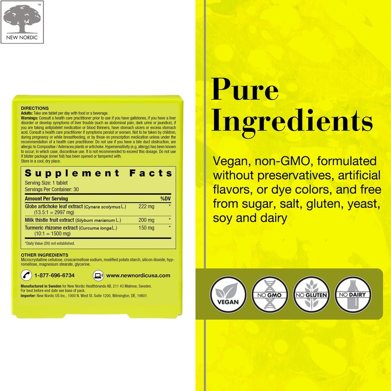 NEW NORDIC NEW NORDIC Active Liver 30-Day Supply, Daily Liver Supplement, Milk Thistle, Artichoke & Turmeric, 30 Tablets (Pack of 1)