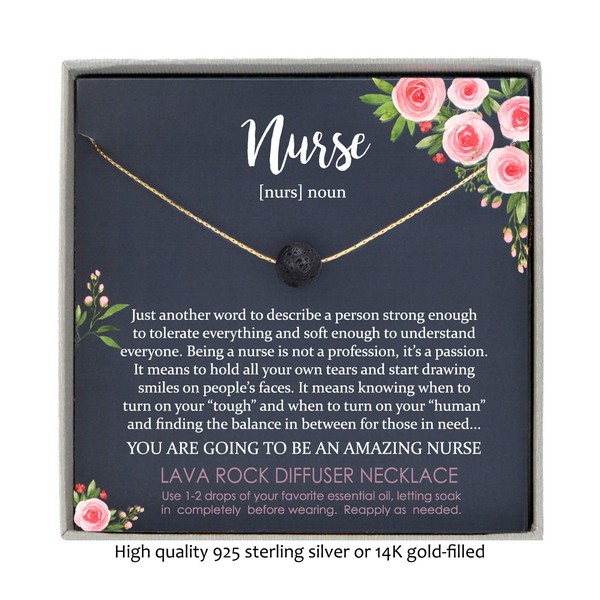 New Nurse Graduation Gift, Aromatherapy Lava Stone Diffuser Necklace with Meaningful Message