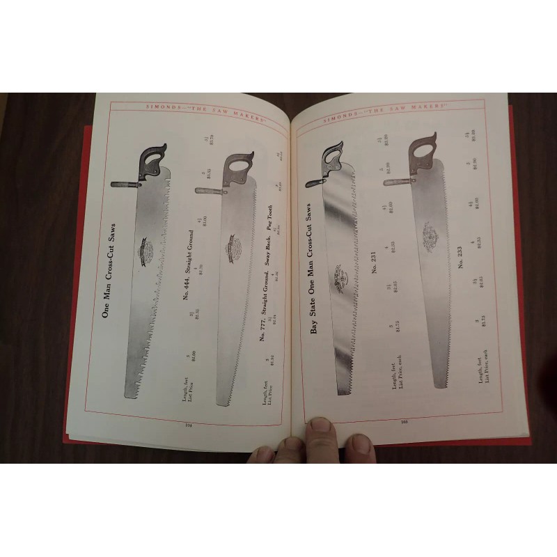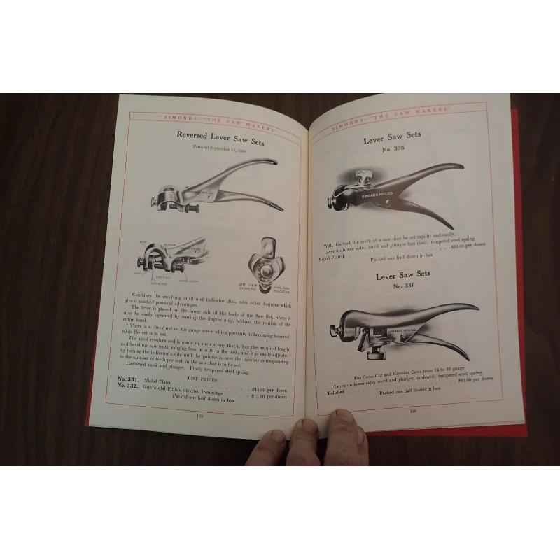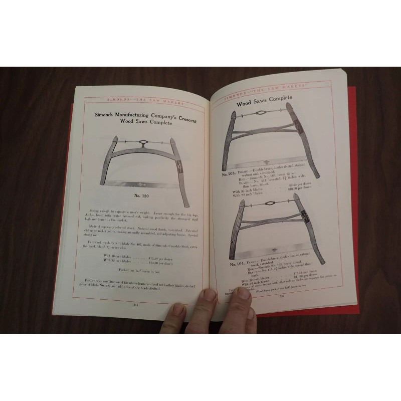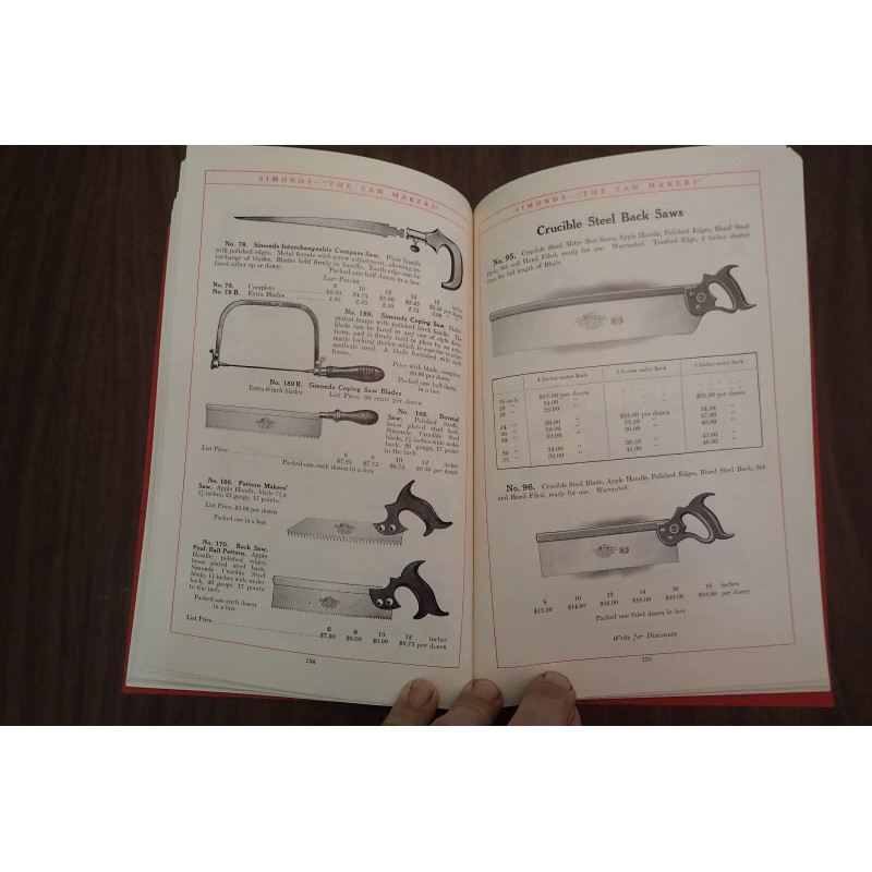 All Simonds used Warranted Special Crucible Steel, Simonds Patented Temper, and are taper ground. Simonds did not make distinctions between cast steel, refined cast steel, London spring steel, extra refined London spring steel, etc., like Disston did, but clearly the more expensive saws, like "Blue Ribbon”, used a higher quality steel than the cheaper saws. The Catalog includes catalogs, saws, saw blades, files, saw sets, swages, saw jointers, speed indicators, cane knives, machine knives, etc.