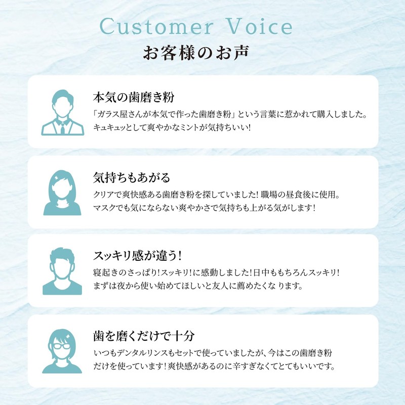 [清掃剤]炭酸Ca、[溶剤]水、[湿潤剤]ソルビトール・グリセリン、[清掃剤]シリカ、[発泡剤]ラウリル硫酸Na、[粘結剤]セルロースガム、[清掃剤]ホウケイ酸(Al/Ca/銅/Na)、[甘味剤]キシリトール・サッカリンNa、[pH調整剤]リン酸、[溶剤]エタノール、[防腐剤]メチルパラベン、[着香剤]メントール・香料、[着色剤]青1
