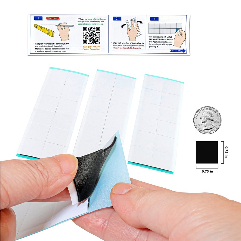 - 【READJUSTABLE AND REMOVABLE】: Without leaving any residue on smooth walls or losing strength! We recommend installing 4 tape squares per sound proofing panel or bass trap. Each piece of double sided tape is made with a 1mm thick foam middle, which makes handling easy!