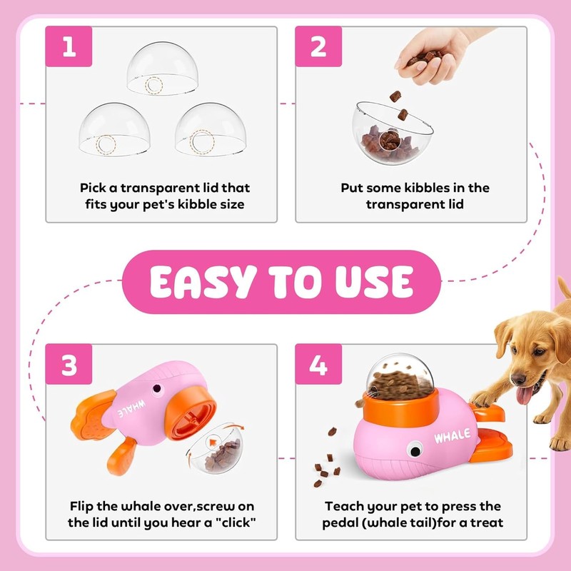 - Fun and Functional Design: Incorporates a trigger-release feeding way to reduce eating pace, designed in a whale form with a dedicated treat area to encourage interactive and educational behavioral enrichment