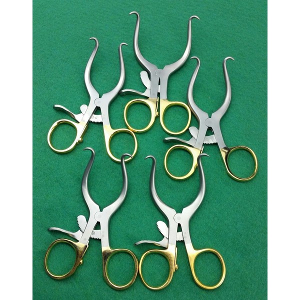 NEW PREMIUM SET OF 5 O.R GRADE GELPI RETRACTOR 3.5" WITH GOLD HANDLE(CYNAMED)