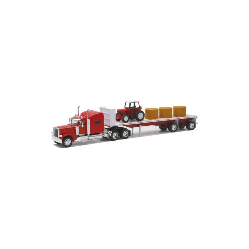 - NEW RAY 10293A 1/32 Petrebilt 389 Flatbed w/Hay/Farm Tractor