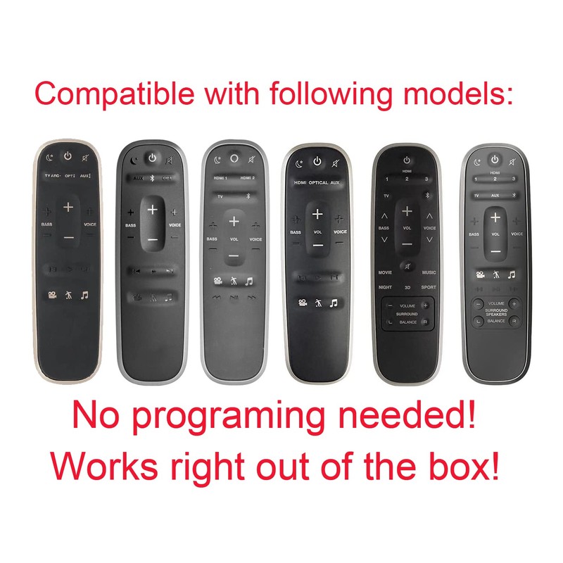 - The replacement soundbar remote is made of high quality material with functional buttons and superior feel, perfect for replacing your broken or old remote control without any pairing operation needed, and is equipped for long life.