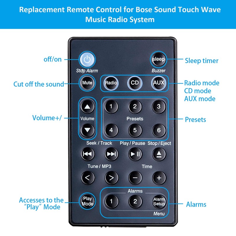 - ABS material, can freely access BOSE devices over 10 meters. The remote control is lightweight and compact, comfortable to hold in your hand, suitable for everyone. It is a perfect replacement for BOSE Soundtouch Wave Music Radio remote control.