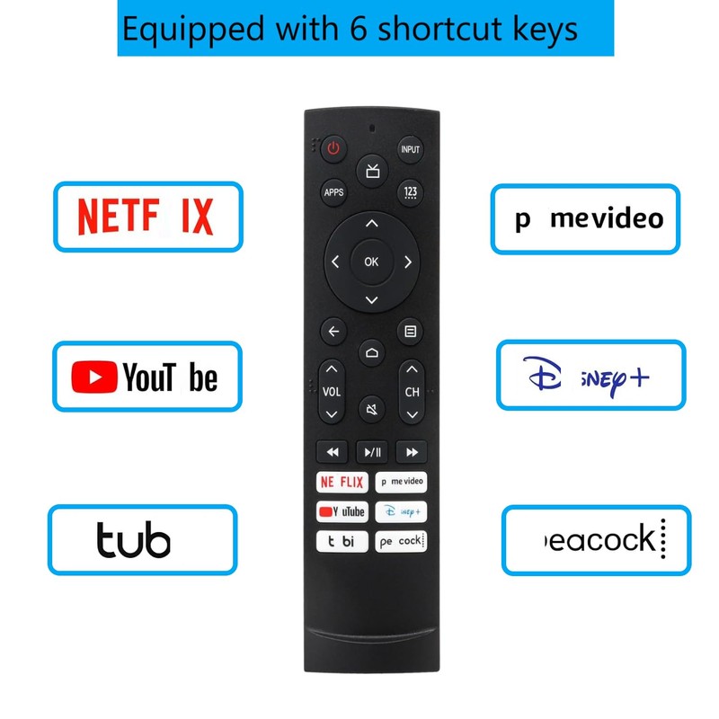 • [6 Popular Shortcut Buttons] 6 shortcut buttons, Netflix, Prime video,YouTube, Disney+, tubi and peacock providing quick viewing experience.