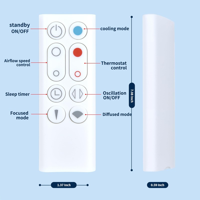 • 【Compatible Models & Color】this replacement remote control is only work for Dyson AM09 Hot + Cool Heater Tower Fan, Part Number: 966538-01. The actual product color is "white". Before purchasing, please make sure that your Dyson remote control model and color are exactly the same as ours, otherwise it will be incompatible.