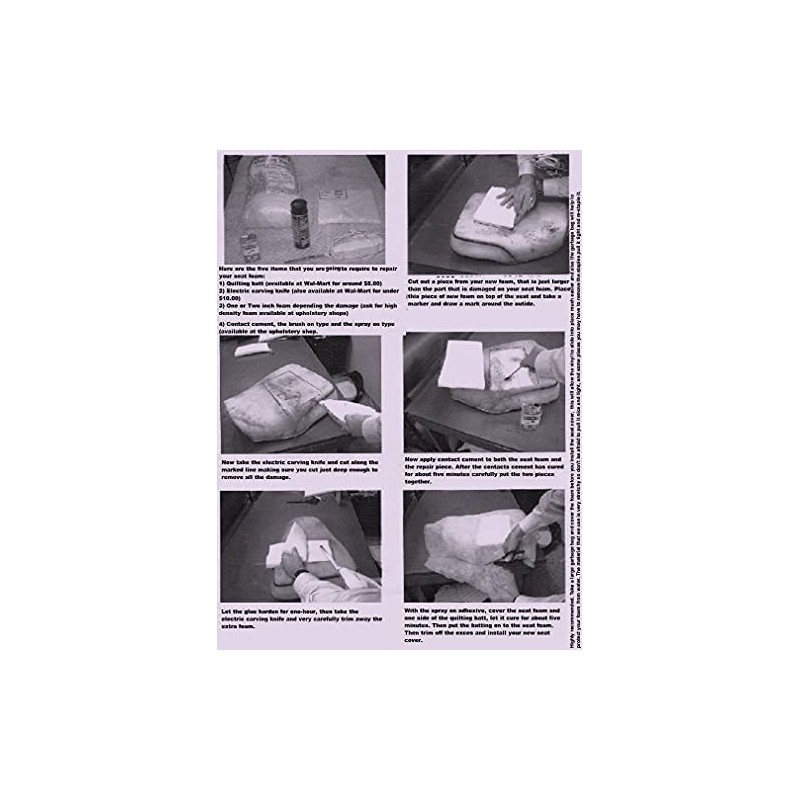 Installation note: please cover the foam with a piece of plastic/garbage bag before installing new seat cover, this will allow the cover to slide into position and make installation much easier.