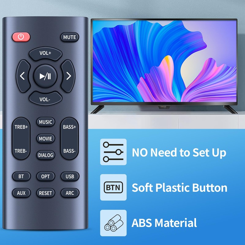 - 【Compatibility】This Replacement Remote Control Compatible with Littoak Subwoofer 2.1 Soundbar 16 inch SE04D BESTISAN 50 Watts Soundbar Quneler Sound Bar.
