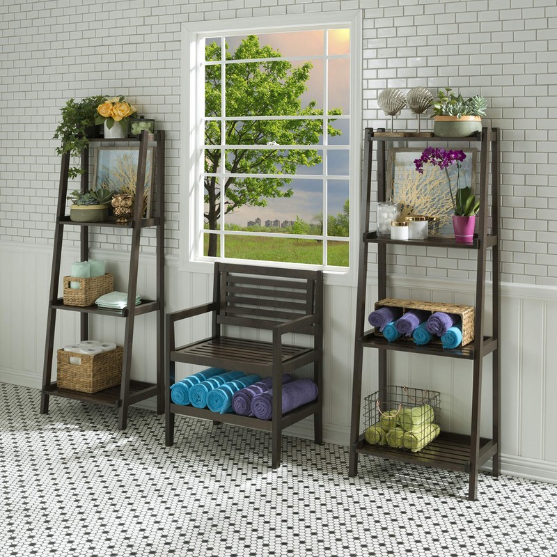 New Ridge Home Goods Dunnsville 4-Tier Wood Ladder Shelf Bookcase in Espresso