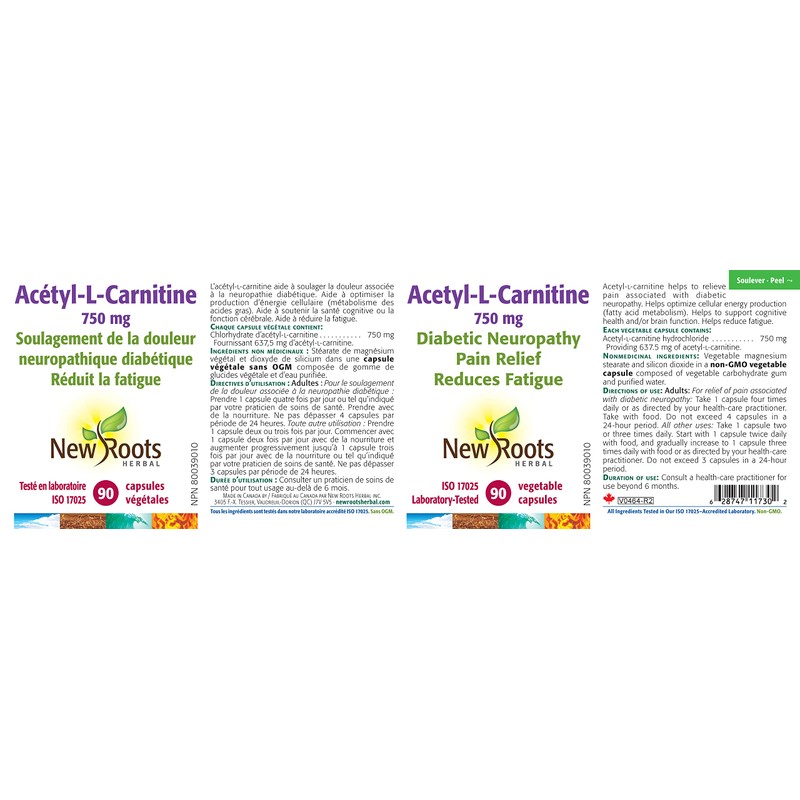 New Roots Herbal - Acetyl-L-Carnitine - 90 Capsules - 750mg per Capsule - Acetyl-L-Carnitine Supplement - Cognitive Supplement - Brain Function Supplement - Fatigue Supplement - Cognitive Support Supplement