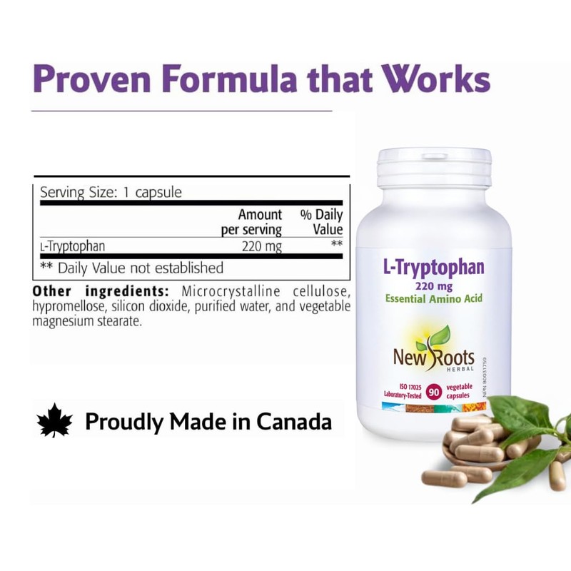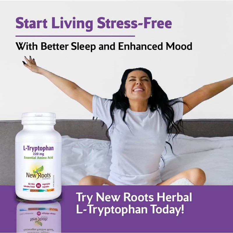 NEW ROOTS HERBAL New Roots Herbal - L-Tryptophan 220mg, 90 Capsules - Source of an Essential Amino for the Maintenance of Good Health