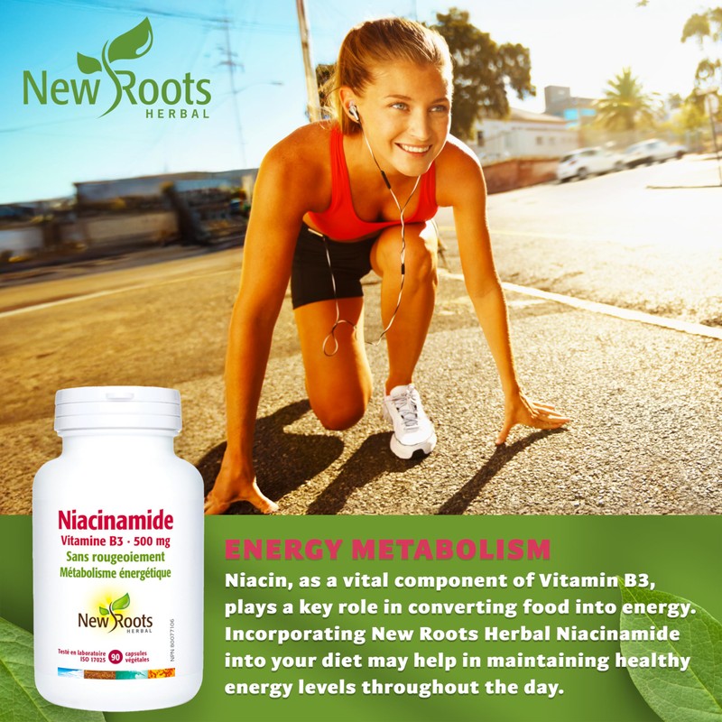 - ENERGY METABOLISM - Niacin, as a vital component of Vitamin B3, plays a key role in converting food into energy. Incorporating New Roots Herbal Niacinamide into your diet may help in maintaining healthy energy levels throughout the day.