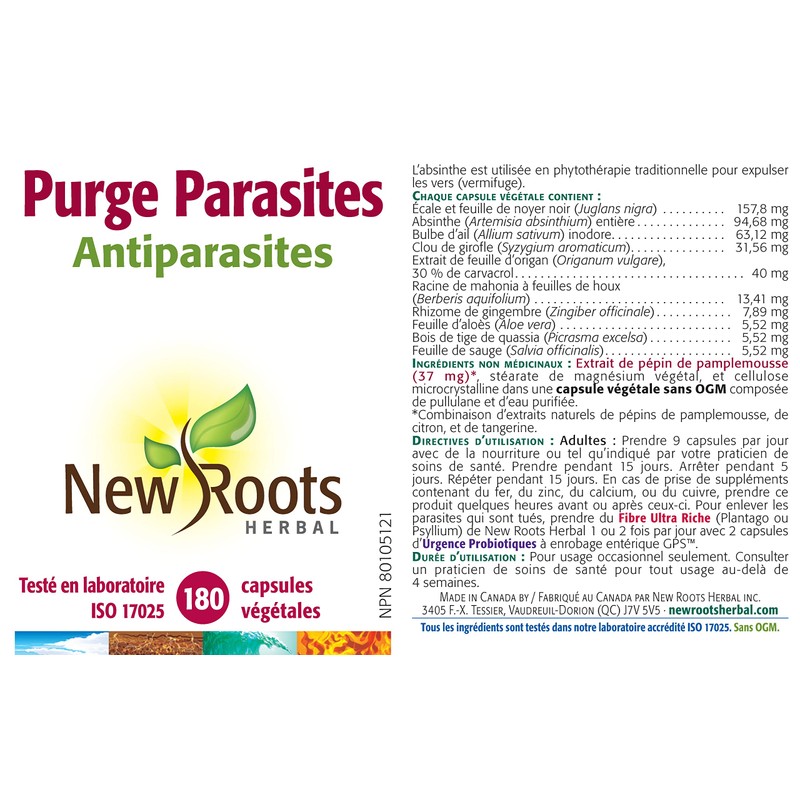 New Roots Herbal - Purge Parasitis - 180 capsules - Antiparasites