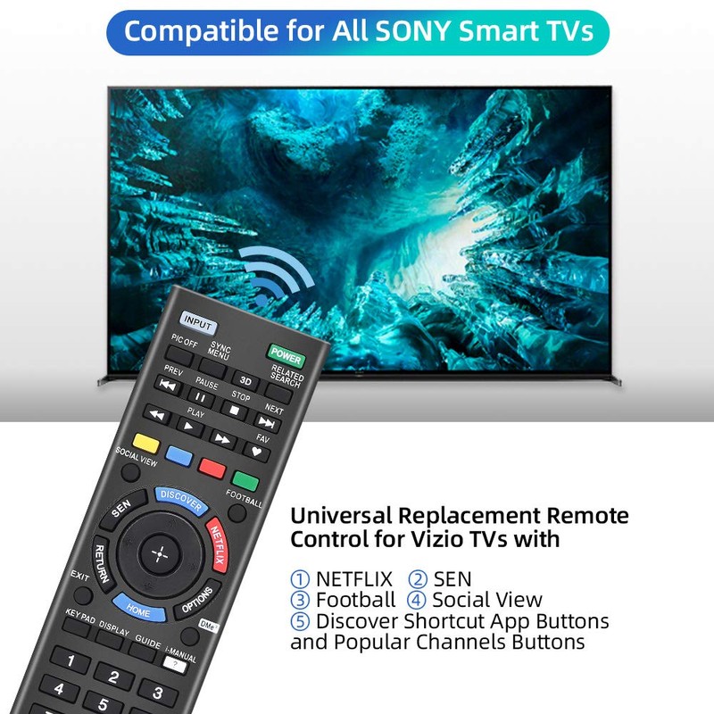 - Compatible con todos los mandos a distancia Sony LCD LED HDTV Smart TV. Tiene botones de acceso directo de Netflix.
