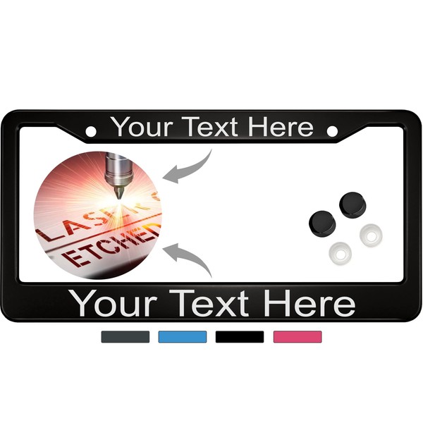 New Special Edition Custom Laser Etched Anodized Aluminum Standard Size - CAR/Automobile License Plate Frame with Free caps - Black (Qty: 1 Frame)