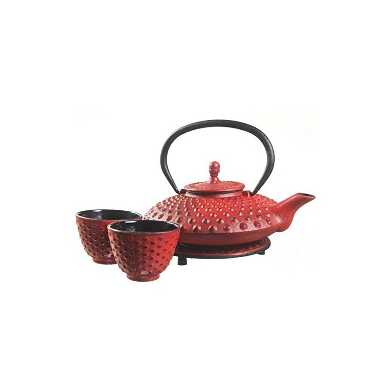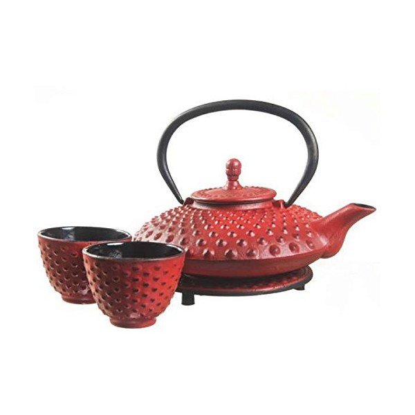 New Star International T8110 Cast Iron Mocha Tea Set with Trivet, 27 Ounce, Red