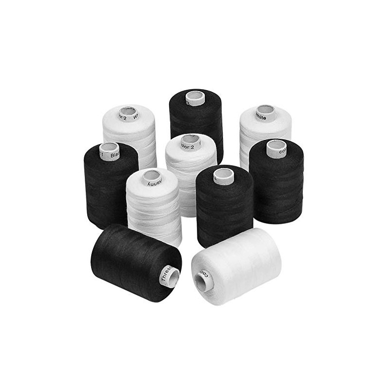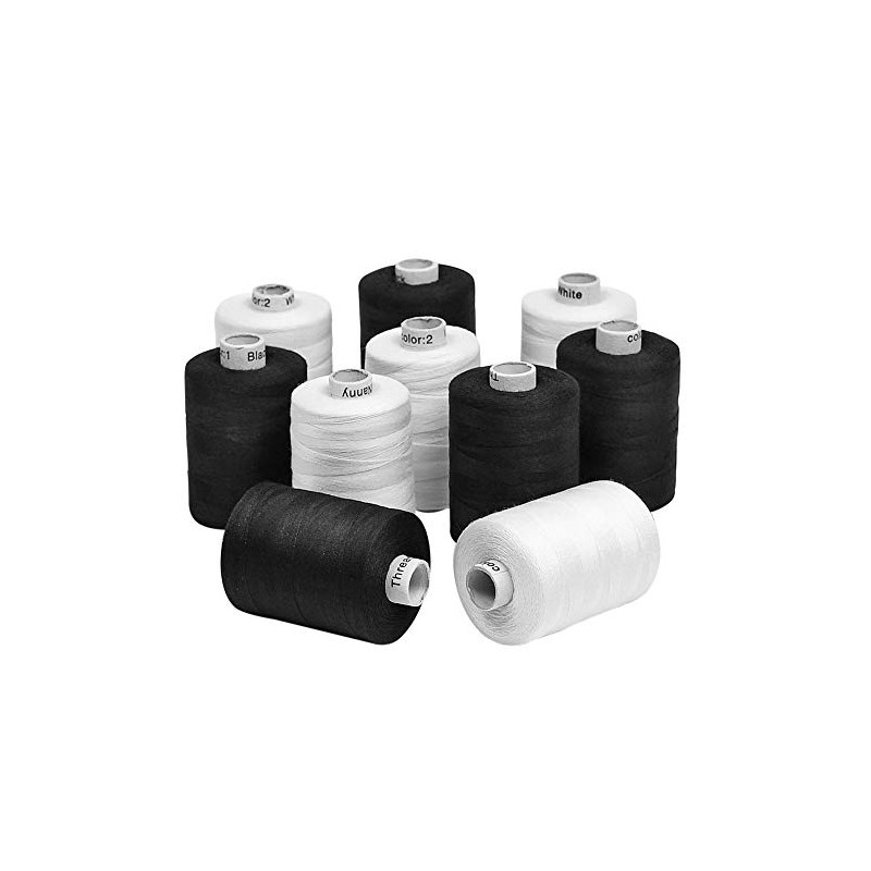 - 10 Spools of High Quality 3-PLY BLACK and WHITE Sewing Quilting Serger Threads