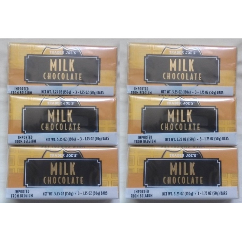 NEW Trader Joe's Milk Chocolate Candy Bars 6 PACK (18 candy bars total) NO ARTIFICIAL FLAVORS/COLORS NO PRESERVATIVES