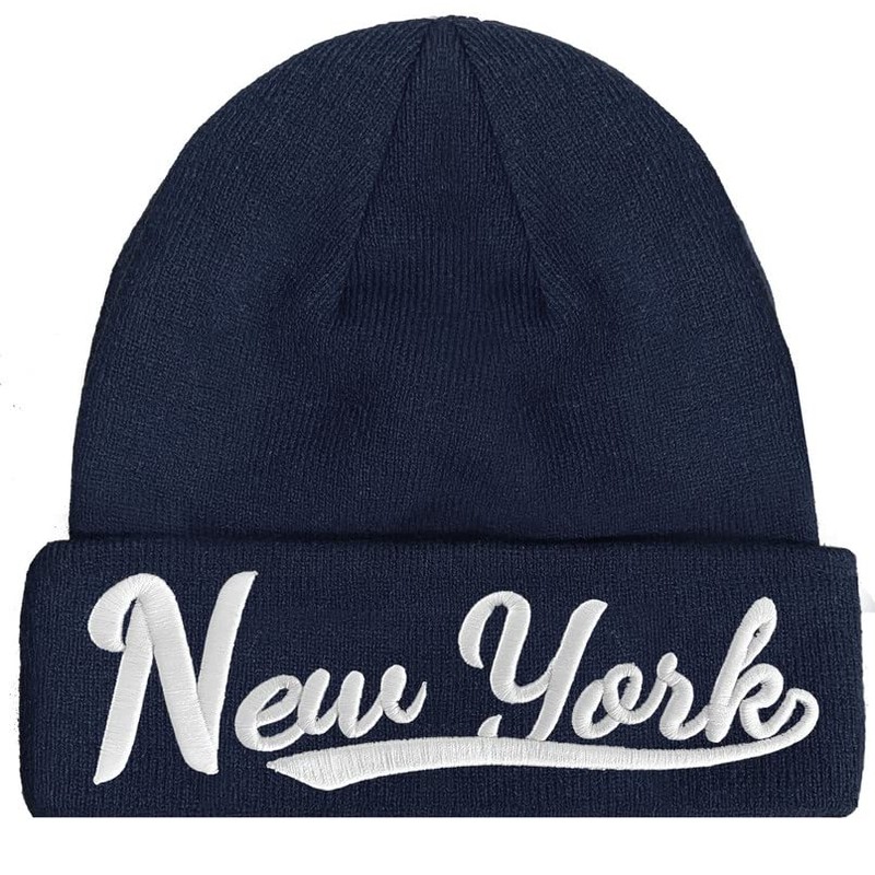 New York 3D Embroidery Classic Cuffed Knit Hat Beanie Toque Skull Cap - Navy ...