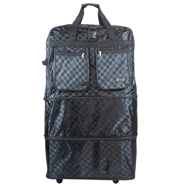 New York XPress 30" 36" 40" Rolling Wheeled Duffel Bag Spinner Luggage Expandable (BlackCheck, 30")