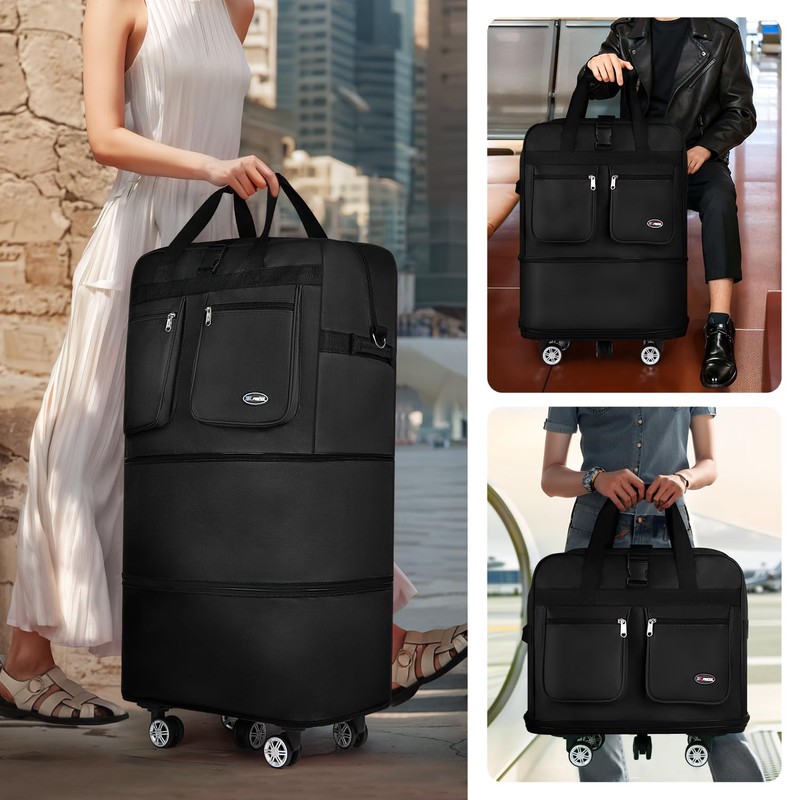 This large capacity soft foldable wheeled travel duffel bag is perfect for family travel, Wheedend Travel, Camping, Tocking, Home Storage and Mobile, and more. Break the limitations of traditional travel bags and easily releases a wonderful journey that is more convenient and comfortable.