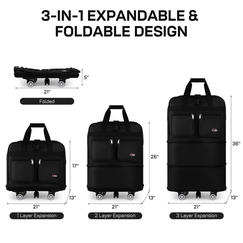 - 【3-Layer Expandable】Expand from 17 - inch to 36 - inch checked luggage for extra space. Fold to 21*5 inches for easy storage under seat or bed.