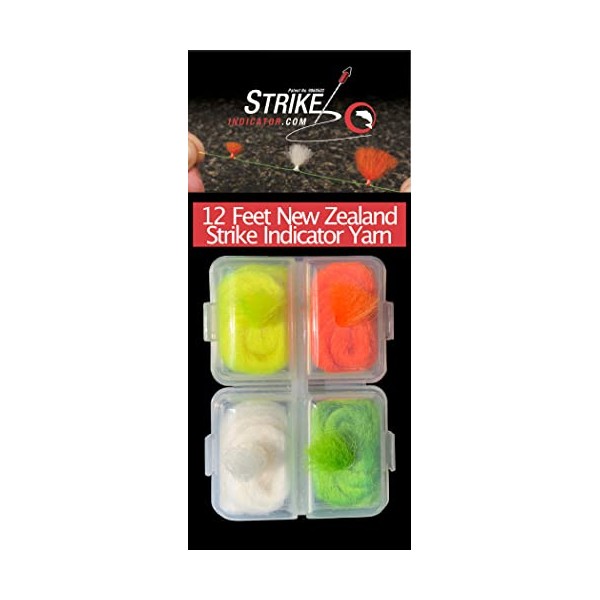 - Highest Quality - Perfect Sized Dispenser - 100% Pure New Zealand Wool Yarn packed in "Perfect" on-river Four Color Yarn Dispenser. Holds 12 feet of yarn in total - 3 feet of each color Wool Yarn in the best strike indicator colors. Precision Spun, Dyed and Engineered to Fit The New Zealand Strike Indicator System. Use one strand with our "Regular Size Tubing" and three Strands with our "X-Large Tubing"