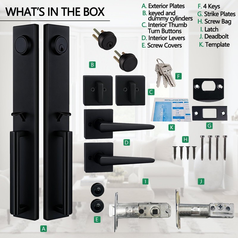 - 【 Double Door Handleset】 This keyed&dummy set comes 2 handle, one is keyed entry handle(active), the other is dummy handle(inactive).